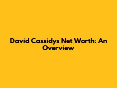 David Cassidy's net worth at the time of his death reflects a career marked by both extraordinary success and significant challenges. While his financial situation may not have mirrored his fame, his contributions to music and television remain unforgettable. His story underscores the importance of financial responsibility and seeking help when facing personal struggles.